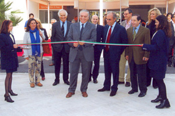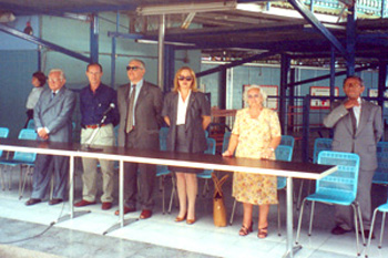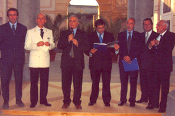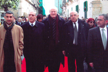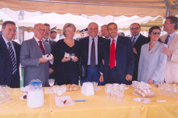2003 - Avola, da sinistra Vinciullo, Urbani, il commissario europeo madame Reading, Bono, Gasparri, l'avvocato Cristiana Luciani e Peter Glidewell