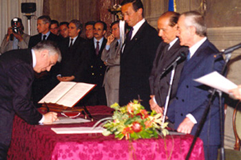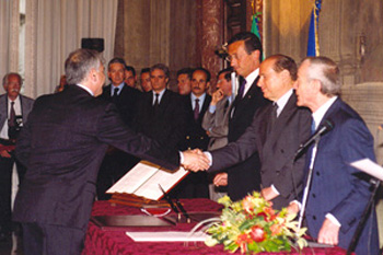 2001 - dopo la firma d'accettazione dell'on. Bono, le congratulazioni di Berlusconi...