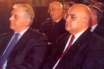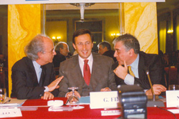2000 - Roma, conferenza sul turismo di Alleanza Nazionale, Bono con Gustavo Selva e il prof. Vertullo