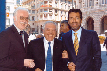 2004 - Genova capitale europea della cultura, la gioia dell'on. Bono, al centro tra il vice presidente regionale Plinio e il presidente ligure Sandro Biasotti
